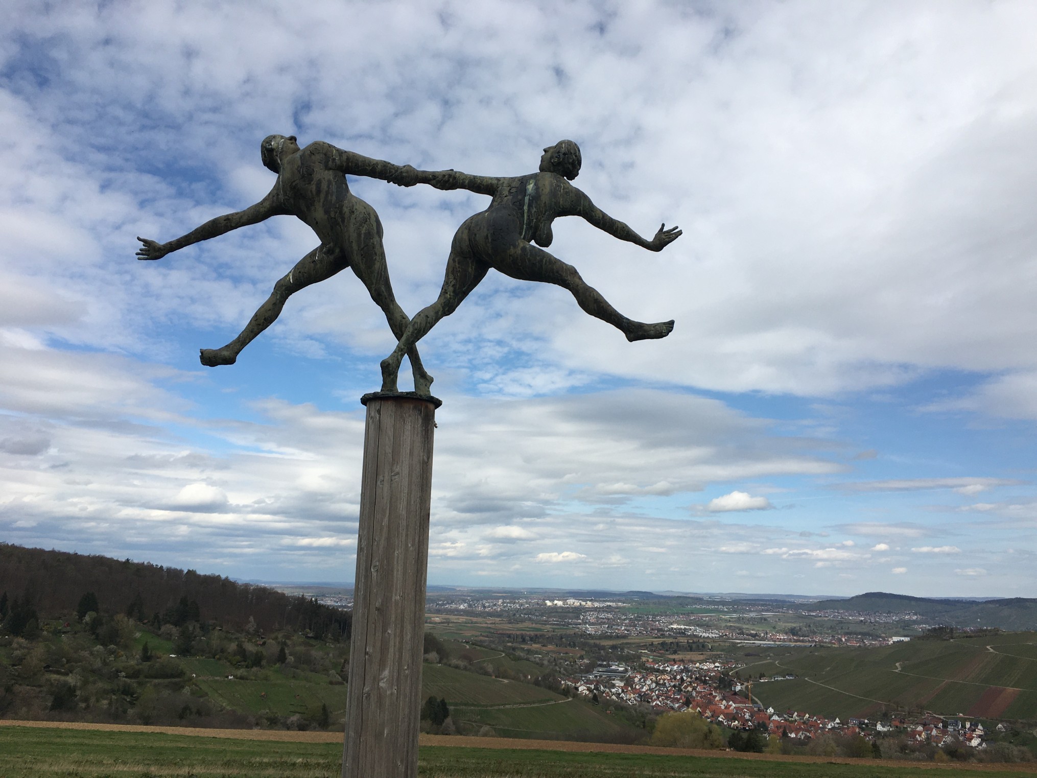 Auf einer abwechslungsreichen Wanderung entlang von Streuobstwiesen und Weinbergen erreichen wir beim Naturfreundehaus die Skulpturenallee „Paare“ von Prof. Karl Ulrich Nuss.