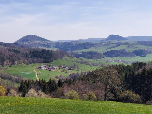 Von dort wandern wir zum Ort Hohenstaufen und weiter zum Aasrücken. Über den Strudelhof geht es zurück zum Ausgangspunkt.