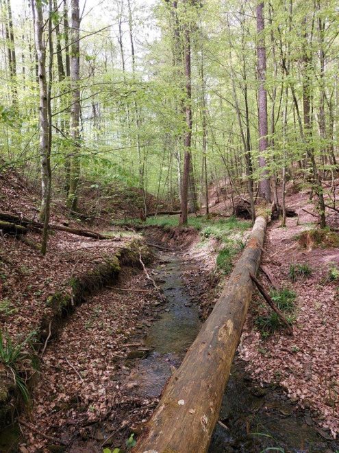 Die etwa zehn Kilometer lange und zirka zweieinhalbstündige Wanderung mit 235 Höhenmeter Auf- und Abstieg führt durch den Bannwald im Schachenbachtal. Über den Forscherpfad, ein idyllischer Trampelpfad, geht es den Hang hinauf. In diesem Schutzgebiet bleibt der Wald sich selbst überlassen. Der weitere Weg verläuft auf schönen Waldwegen. Zum Schluss geht es nochmal über einen schmalen Pfad den Hang hinauf und von dort zurück zum Ausgangspunkt.