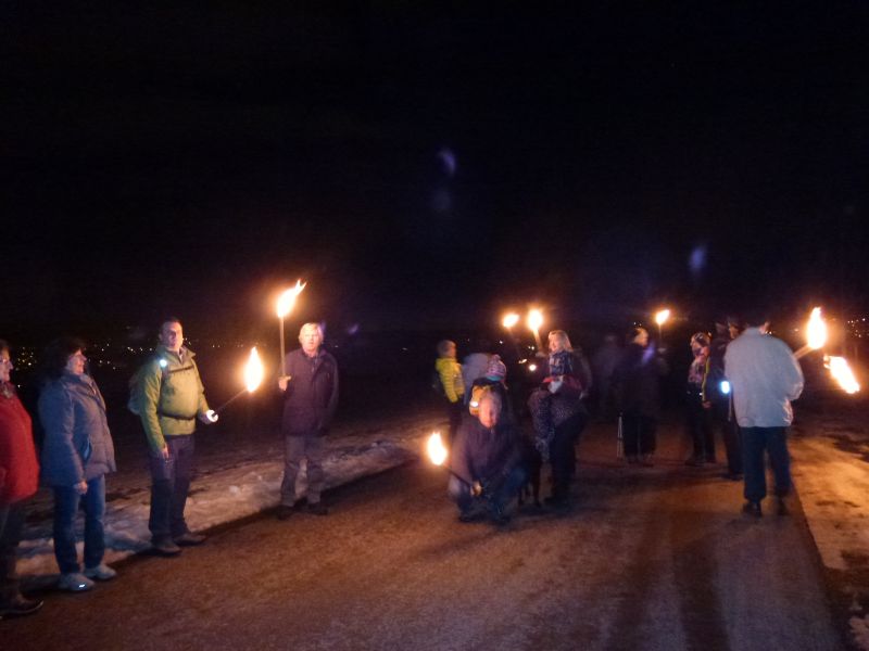 Die Albvereinler kehrten in der im letzten Jahr neu eröffneten Schänke auf Schloss Filseck ein. Nach einem gemütlichen Aufenthalt mit leckerem Essen wanderte die Gruppe in der Dunkelheit mit Fackeln nochmals eine Stunde Richtung Baronenwald zum Ausgangspunkt.