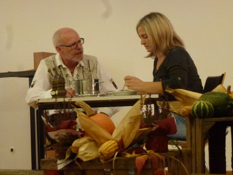 Die Zuschauer konnten sich auf amüsierte und unterhaltsame Stunden mit dem Theaterstück in drei Akten von Jürgen Schuster freuen. Schon nach kurzer Zeit sprang der Funke auf das Publikum über, welches nicht mit begeistertem Szenenapplaus sparte. Zum Schluss wurden die Theaterspieler „d´Schmarra-Raatscher“ und das Team hinter den Kulissen mit langanhaltendem Schlussbeifall belohnt. Den oben erwähnten Darstellern und Souffleur Albert Mühleck für den Einsatz ein herzliches Dankeschön, denn alle mussten viele Entbehrungen auf sich nehmen und Freizeitstunden für die Auftritte opfern. Das gespielte Theaterstück stand zum ersten Mal unter der Spielleitung von Udo Leyrer. Zuvor war Rainer Volland über 30 Jahre der verantwortliche Theaterleiter. Wie jedes Jahr bot die Ortsgruppe des Vereins ein vielfältiges Speisenangebot an.