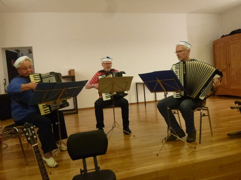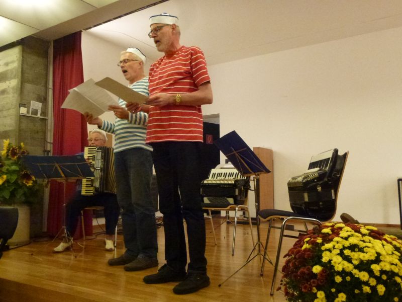 Beiträge aus dem Publikum wie ein „Alltagsgespräch zwischen zwei guten Freundinnen“, vorgestellt von Ingrid Dauner und Gertrud Koller und ein Gedichtvortrag von Erika Smolka-Grau „Ich wünsche Euch Zeit“, sorgten zudem für beste Stimmung. Zum Schluss trat Gertrud Koller mit den Seemännern Udo Leyrer und Albert Mühleck mit Akkordeonmusik und Seemannsliedern auf und rundete das Programm ab. Die Gruppen und Darsteller ernteten viel Beifall.