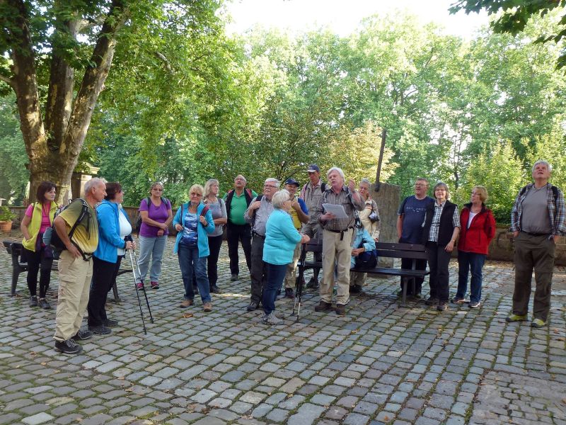 Über die Allgäuer-Brücke in Uhingen und am evangelischen Pfarrhaus vorbei führte die Route aufwärts zum Schloss Filseck, welches nach über drei Stunden Wanderzeit erreicht wurde. Die Mühen des Aufstiegs lohnten sich, da von der Anhöhe der Blick auf den Hohenstaufen und weit in die Landschaft reicht.