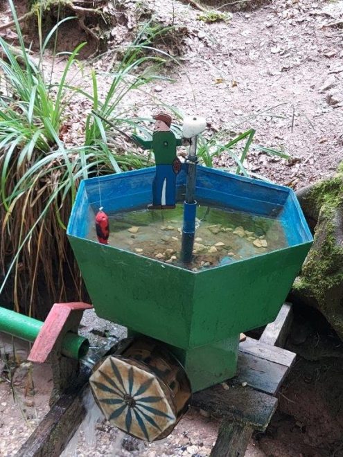Das Hämmern und Klopfen ertönte schon beim Betreten und die Gruppe erfreute sich beim Durchlaufen an den liebevoll gestalteten Wasserspielen. Toll gemacht hörte die Wanderführerin Monika Lechner immer wieder von den begeisterten Mitwanderern.