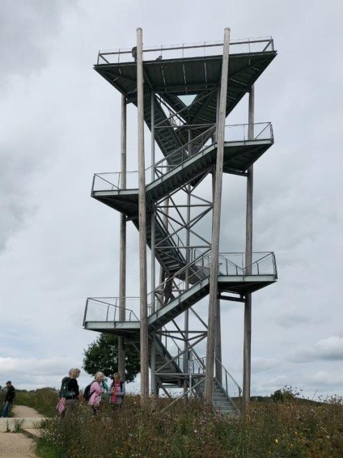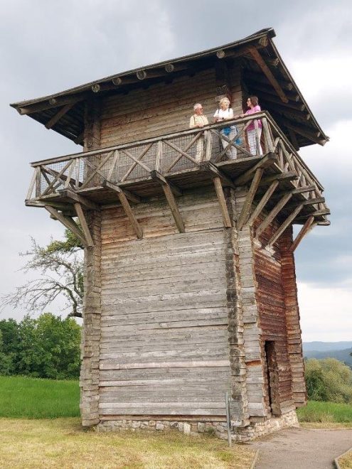 Der nächste Punkt war der Aussichtsturm Heidengraben mit 102 Treppenstufen. In 18 Metern luftiger Höhe hatte man einen Blick auf das weite Areal der Keltensiedlung. Der Rückweg begann an der Weltkugel-Sonnenuhr auf dem Astropfad mit vielen Erklärtafeln.