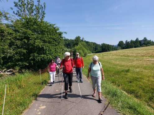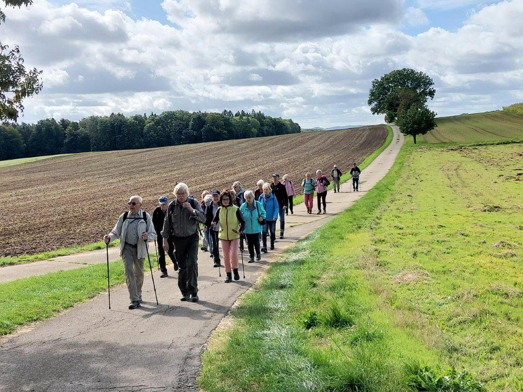 Nach drei Stunden und einer Wanderstrecke von zehn Kilometern wurde nach einem Anstieg der Parkplatz erreicht. Auf der Strecke hatten die Senioren eine fantastische Aussicht über das Land und die Schwäbische Alb in der Ferne sowie auf die drei Kaiserberge. Auf der Rückfahrt fand die Abschlusseinkehr im Biergarten im Gasthaus Engel in Bartenbach statt.