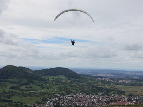 Durch die im Frühling erwachende Natur ging es vorbei am Segelflugplatz von Bad Ditzenbach und anschließend am Segelflugplatz der Fliegergruppe Geislingen. Auf der Strecke sind zahlreiche Windkrafträder aufgebaut.